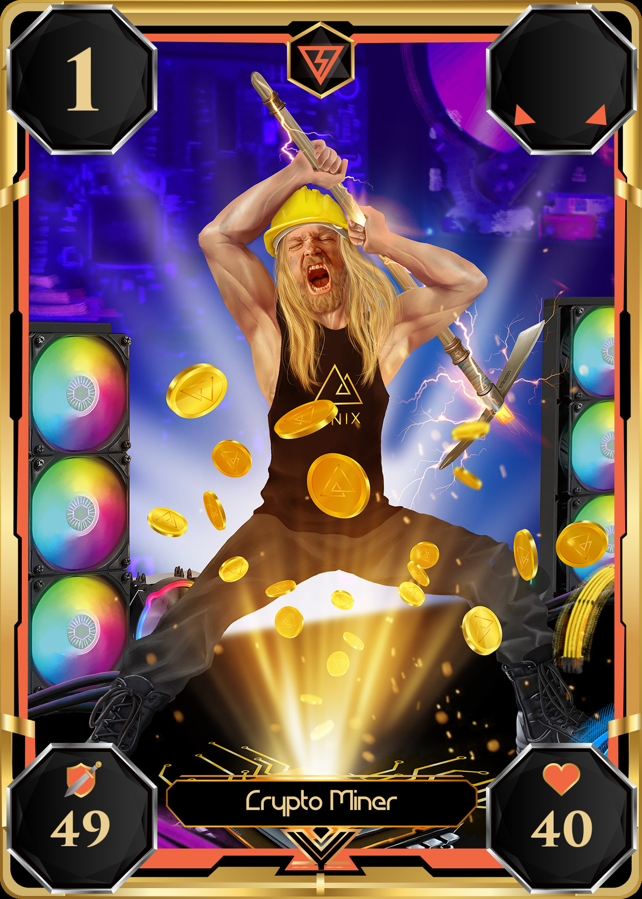 The electricity that keeps the blockchain alive, the Crypto Miner adds great value to the network by using computer processing power to solve complex mathematical problems. Solving the problems will result in the block being successfully added to the blockchain, thus obtaining crypto rewards. The Crypto Miner is pivotal in the success of the Army of Crypto, fighting for the efficiency and effectiveness of the blockchain.