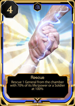 The ability to contact the spiritual realm to revive fallen soldiers is imperative for a successful army. Perform this spell to communicate with the mystical spirits to rescue one card from the chamber with a certain amount of health and attack power. Rescued card must sleep for 1 round. Call upon the spirits to bless your army and return defeated soldiers to the battlefield.