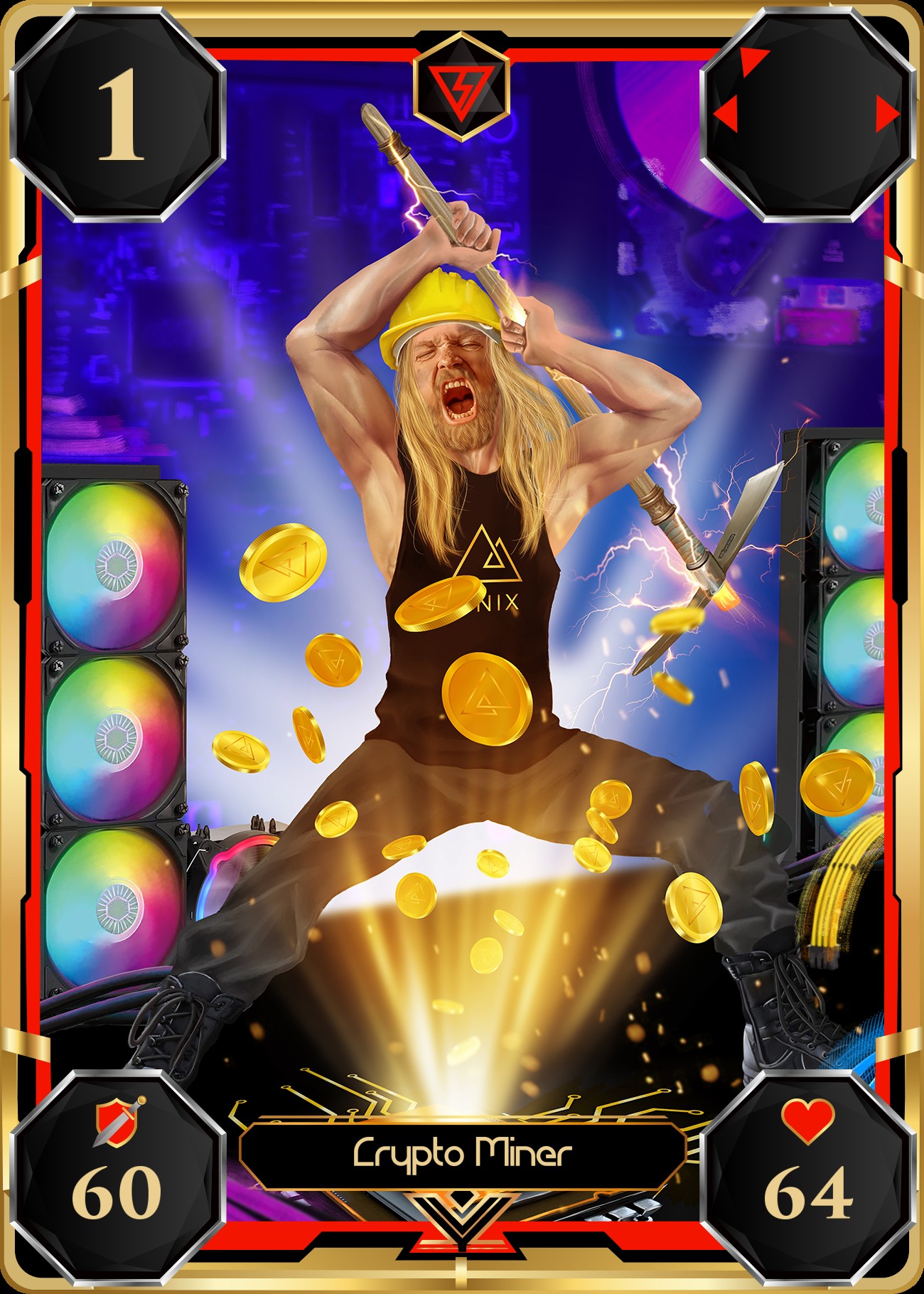The electricity that keeps the blockchain alive, the Crypto Miner adds great value to the network by using computer processing power to solve complex mathematical problems. Solving the problems will result in the block being successfully added to the blockchain, thus obtaining crypto rewards. The Crypto Miner is pivotal in the success of the Army of Crypto, fighting for the efficiency and effectiveness of the blockchain.