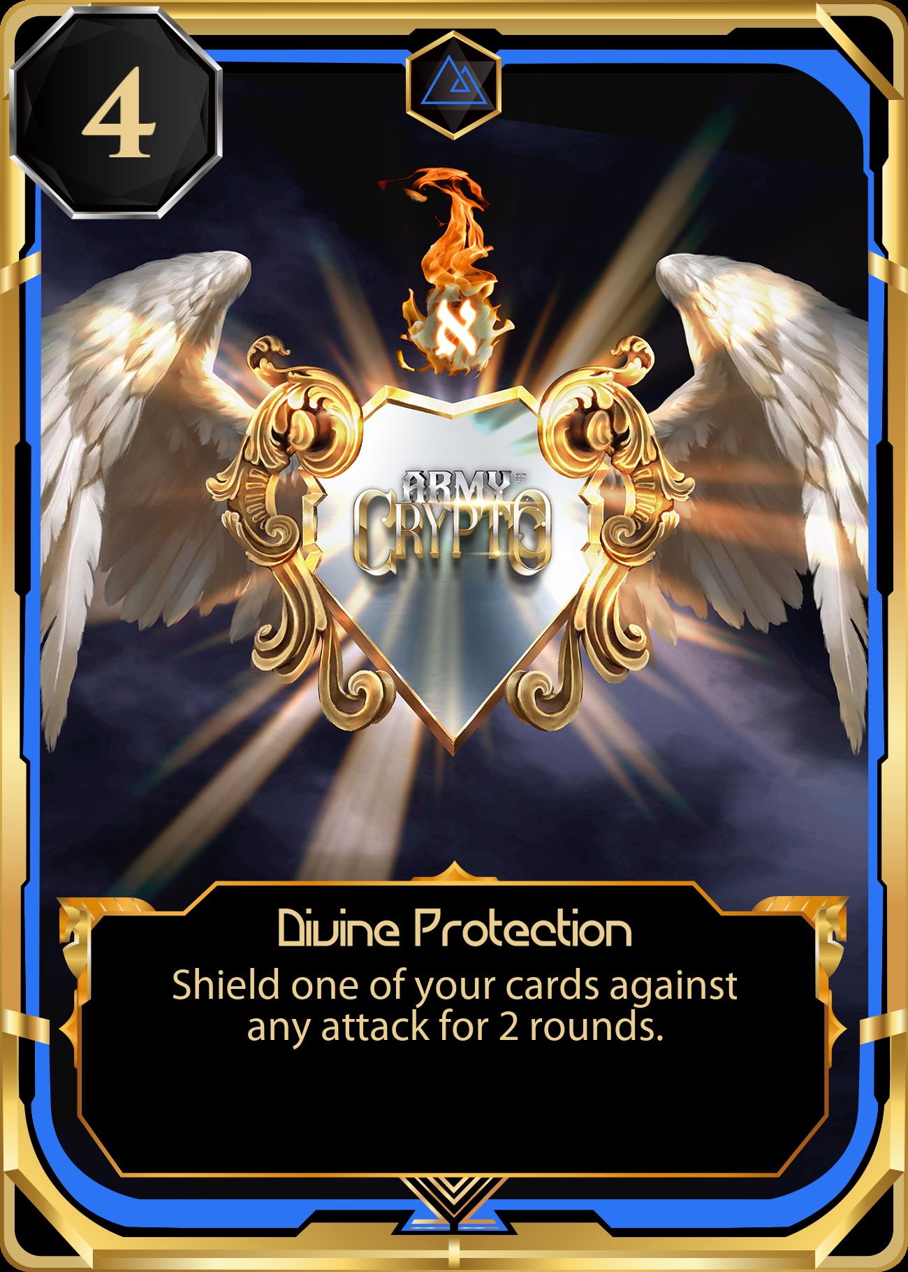 A divine protection is imperative for repelling the enemy’s attacks on your army. Draw on the magical powers to cast a spell that grants a shield to protect your card from the enemy's attacks for a period of time. Utilize this power to protect your army from damage and launch a counter attack.