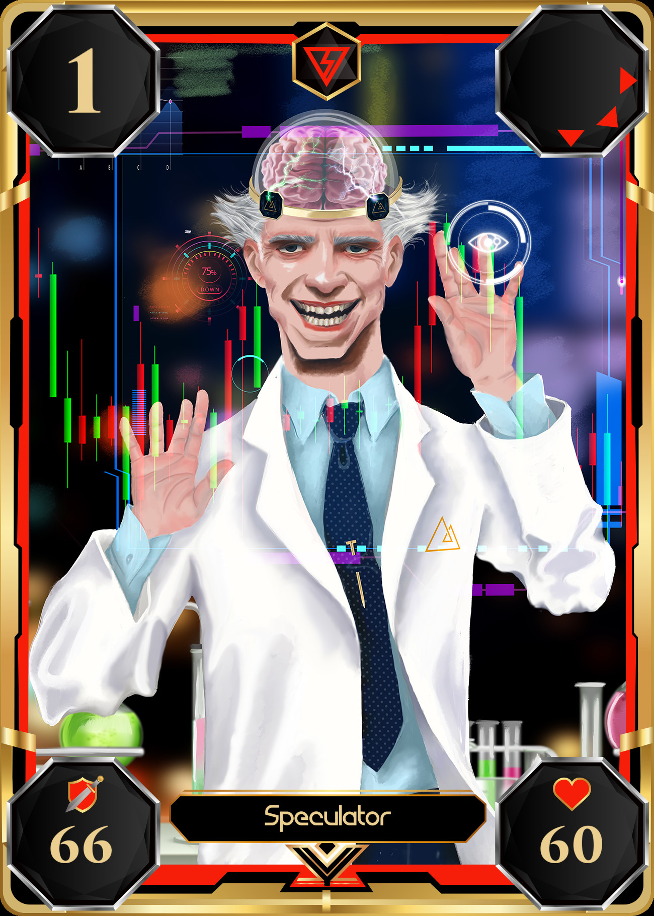 Eyes firmly on profits and profits alone, the Speculator will resort to any means necessary to achieve his goals. He is known for his financial transactions that have substantial risk of losing all value, but with the expectation of exponential rewards. His lightning fingers manipulate the market to exploit small changes in search for his desired profits.