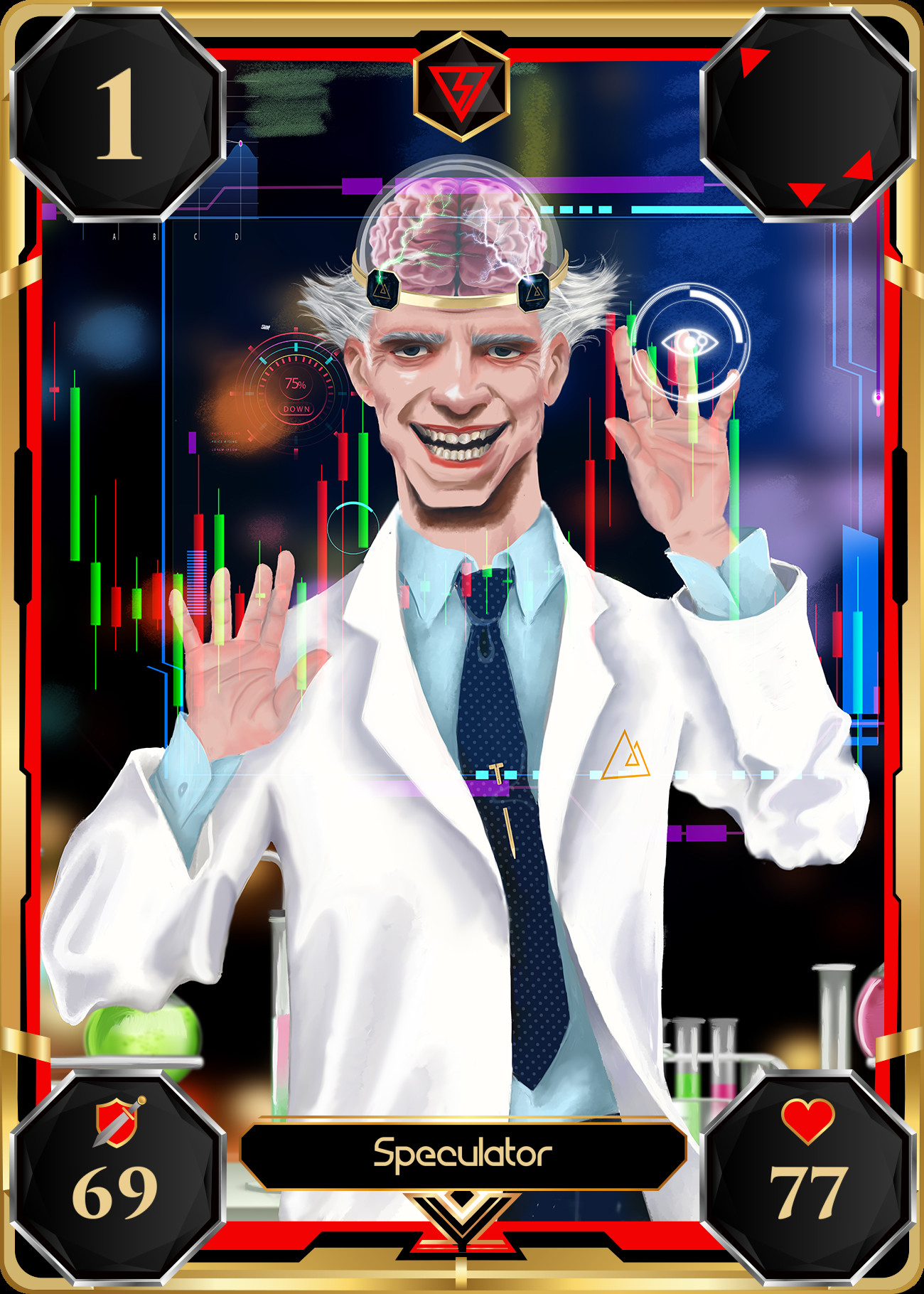 Eyes firmly on profits and profits alone, the Speculator will resort to any means necessary to achieve his goals. He is known for his financial transactions that have substantial risk of losing all value, but with the expectation of exponential rewards. His lightning fingers manipulate the market to exploit small changes in search for his desired profits.