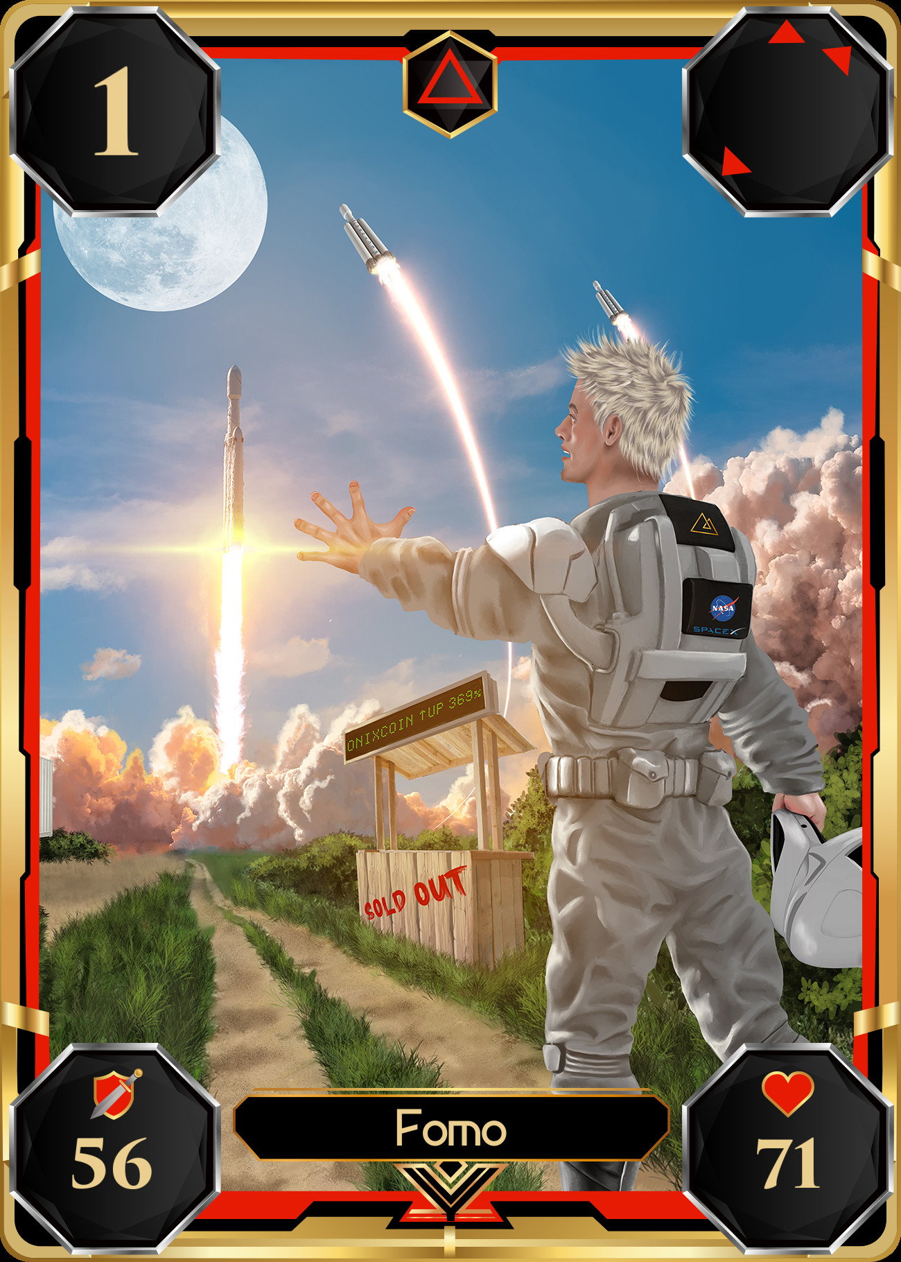 When the news arrives on the next cryptocurrency to rocket to the moon, Fomo arrives late to the party. Fear of missing out starts to kick in and he makes a last ditch attempt to board the ship with the chance of taking a seat. Fomo will resort to any means necessary to combat Fud and encourage investors to change positions.