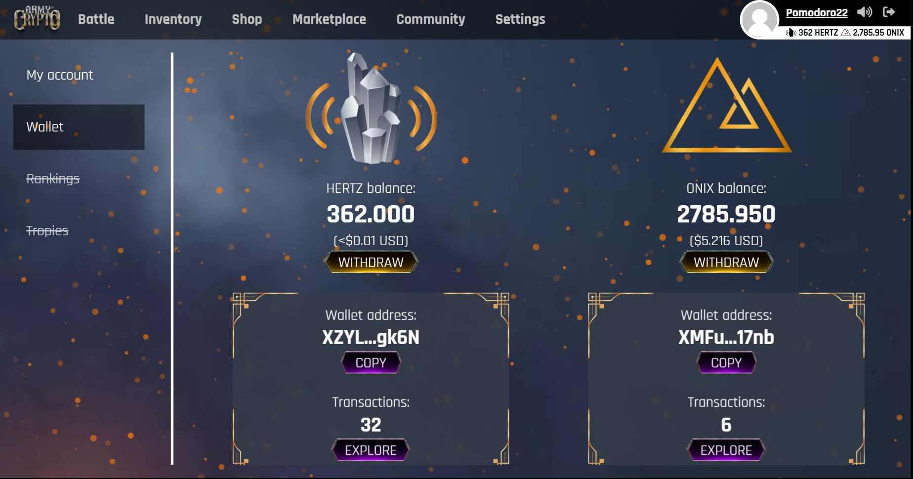 We also provide wallet details, so users can see their HERTZ and ONIX balances, withdraw them, show deposit addresses and explore transactions.