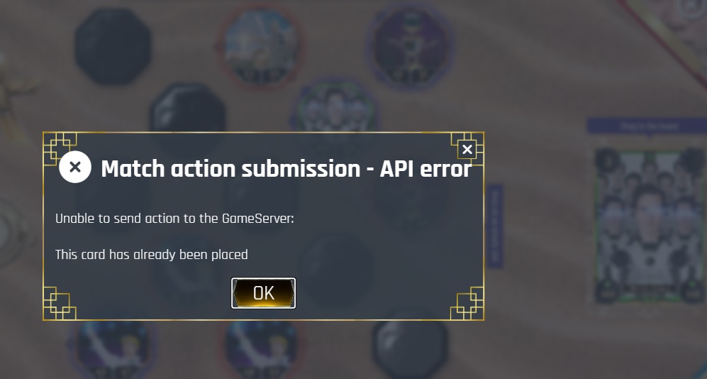 I got an error saying "Unable to send an action to the GameServer: This card has already been placed"