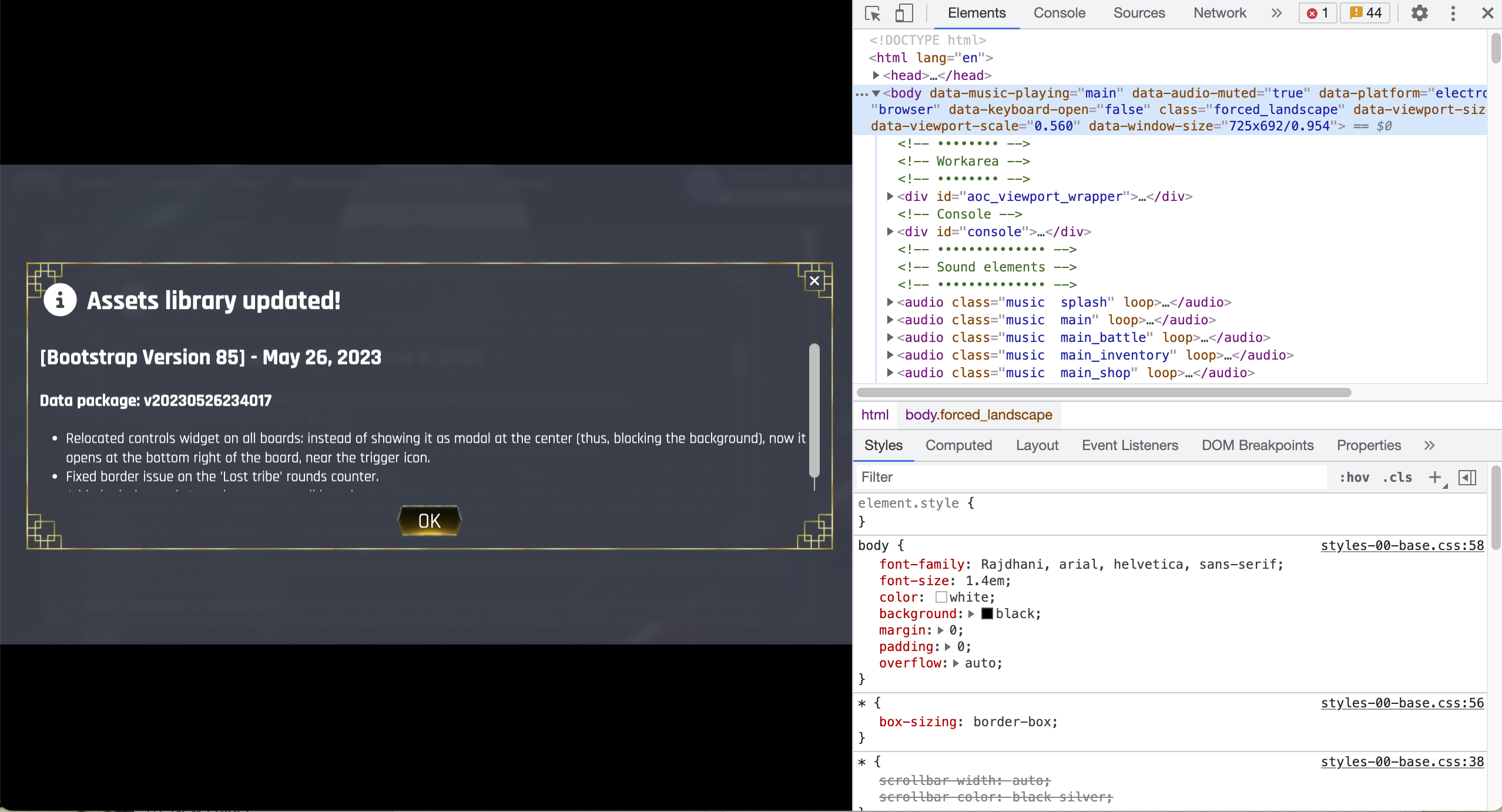 When opening the game, html code window opens on the side too. Make sure to have the html window closed.