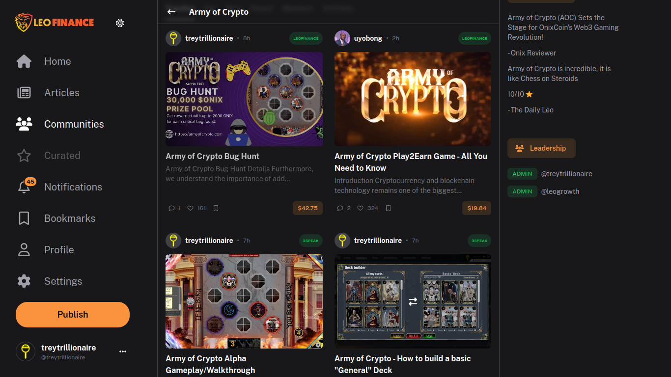 Leo Finance, renowned for its dynamic web3 features, commits to establishing an Army of Crypto Community page on its platform. This dedicated space will serve as a hub for enthusiasts, players, and developers to connect, share insights, and explore the vast world of Army of Crypto. By joining Leo Finance, community members gain access to a knowledgeable web3 community, opening up new possibilities for collaboration and learning.