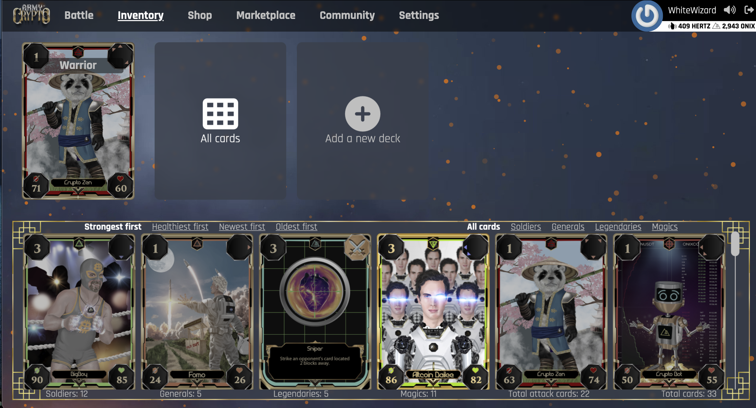 Now, there's one thing: the deck on the board has the cards with no padding between them, so hovering them won't show the glow around.